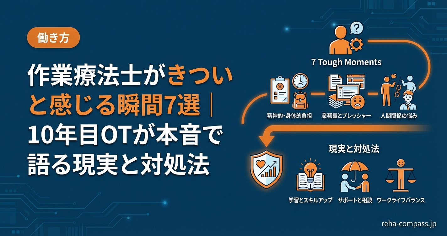 作業療法士の仕事は、やりがいがある。それは間違いない。でも「きつい」と感じる瞬間があるのも、また事実。僕は理学療法士として10年以上臨床を経験し、OTの同僚たちと何度も深夜まで語り合ってきました。彼らの悩み、苦しみ、そして乗り越えた話をたくさん聞いてきた。